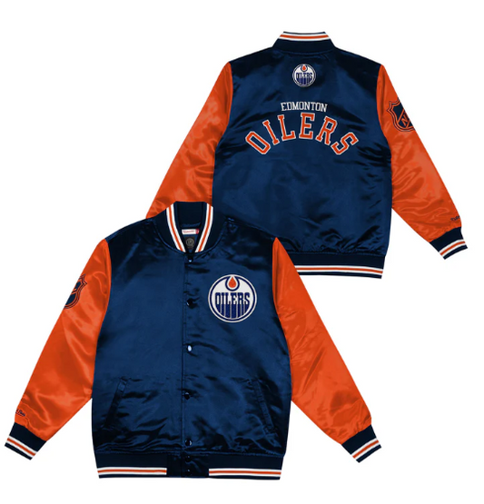 Edmonton Oilers Kids Mitchell & Ness Blue & Orange Prime Time Satin Jacket